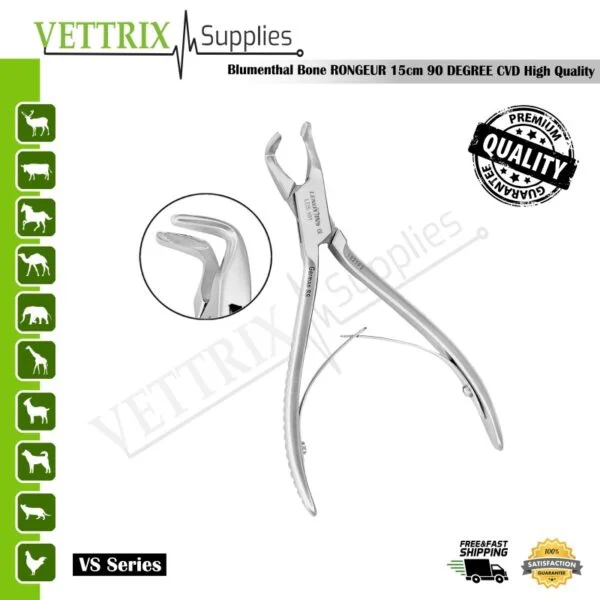 Vettrix Supplies offers high-quality surgical instruments trusted by professionals worldwide. The Bone Rongeur Blumenthal CVD 90 Degree 15cm provides precision, durability, and ergonomic handling, making it an essential tool in bone surgeries.