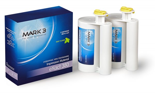 Type | eXact VPS 380 Impression Material Heavy Body Regular Set Mint 2/pk. – MARK3®*, eXact VPS 380 Impression Material Heavy Body Fast Set Mint 2/pk. – MARK3®*, eXact VPS 380 Impression Material Monophase Regular Set Mint 2/pk. – MARK3®*, VPS 380 Impression Material Heavy Body Regular Set 2/pk. – MARK3®*, VPS 380 Impression Material Monophase Regular Set 2/pk. – MARK3®*, VPS 380 Impression Material Heavy Body Fast Set 2/pk. – MARK3®* |