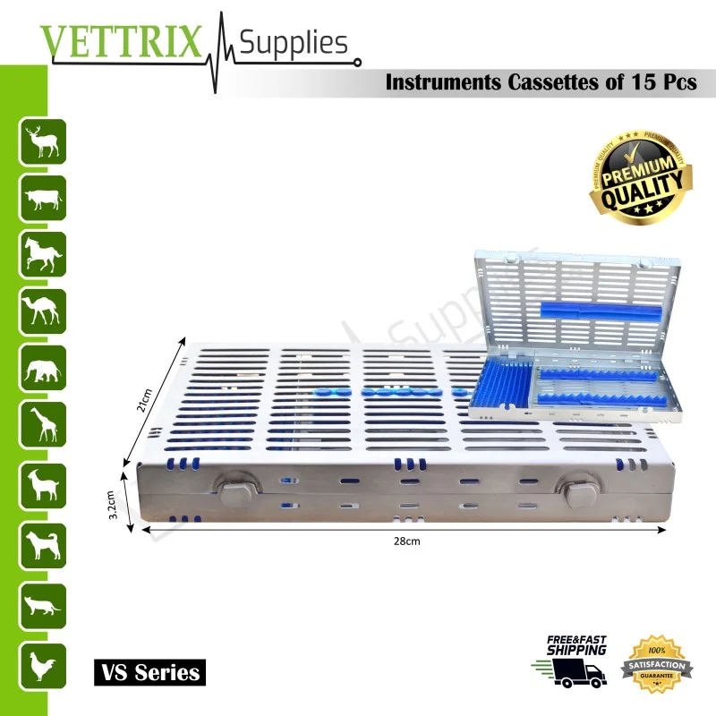 Vettrix Supplies provides high-quality surgical storage solutions trusted by professionals worldwide. The Instruments Cassettes of 15 Pcs ensures organization, safety, and long-term protection for your valuable instruments.