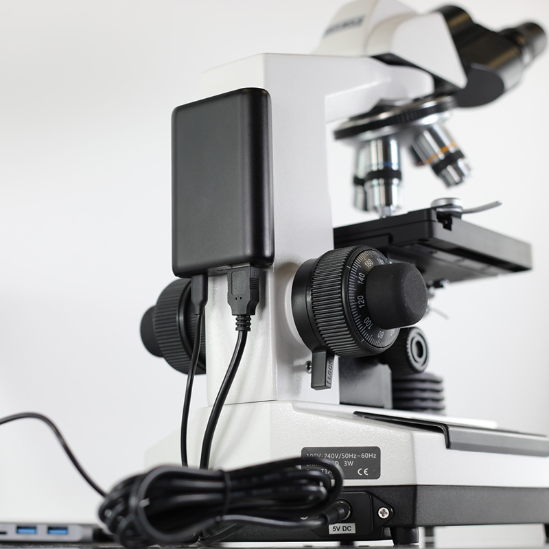 / Revelation III Trinocular, Achro, LED, 5vDC Base, USB Cord, Battery – PORTABLE Microscope